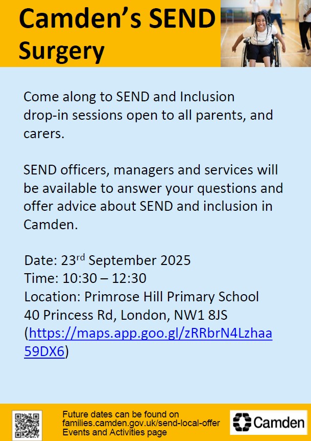 Our SENDCO attends the Local Authority SENDCO forum which keeps all schools up to date with national developments and local projects on inclusion. We are also part of the Camden SEND Learning Hub.